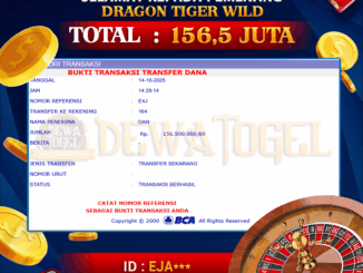 DEWATOGEL JACKPOT LIVE CASINO DI DRAGON TIGER WILD Rp 156.500.000,- LUNAS