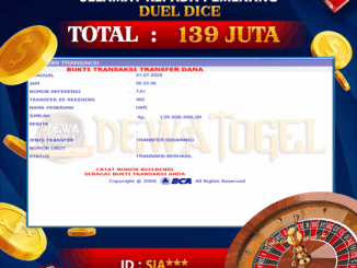 DEWATOGEL JACKPOT LIVE CASINO DI DICE 6 Rp 119.000.000,- LUNAS MEMBER DEWATOGEL MENERIMA PELUNASAN KEMENANGAN DEWATOGEL JACKPOT LIVE CASINO DI DICE 6 Rp 119.000.000,- LUNAS […]