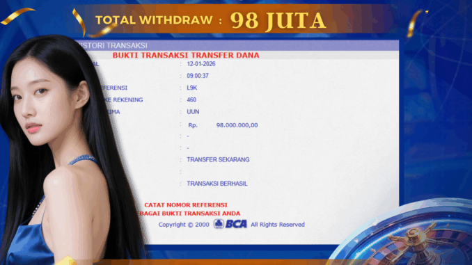 DEWATOGEL mengucapkan selamat kepada user id : UUN*** yang telah berhasil mendapatkan jackpot pada permainan LIVE CASINO DI 24D SPIN. Kemenangan sebesar Rp 98.000.000,-. telah dibayarkan LUNAS oleh pihak dewatogel kepada pemilik user id setelah yang bersangkutan mengisi formulir withdraw. Proses pencairan dana berlangsung sangat cepat hanya dalam waktu 5-10 menit sudah berada dalam rekening pemilik user id. Bukti transfer yang dapat anda lihat adalah bukti SAH / VALID yang langsung di dapatkan melalui bukti transaksi dari Bank yang digunakan untuk pengiriman dana pada rekening pemilik user id. Terima kasih kami sampaikan kepada para pengguna setia DEWATOGEL yang telah menggunakan situs kami, sebagai Bandar Terpercaya yang pastinya membayar semua kemenangan member hingga lunas. Apakah DEWATOGEL PENIPU ? Reputasi “DEWATOGEL TERPERCAYA” sudah sangat melekat. puluhan hingga ratusan ribu pengguna setia DEWATOGEL tetap menggunakan situs terbesar dan terbaik di Indonesia ini. Hapus rasa was-was dan khawatir anda, kemenangan anda berapapun PASTI dibayarkan hingga lunas.