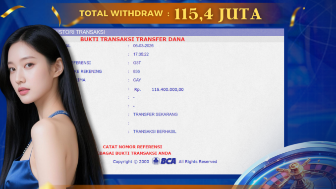 DEWATOGEL mengucapkan selamat kepada user id : TUM*** yang telah berhasil mendapatkan jackpot pada permainan LIVE CASINO DI SICBO DICE. Kemenangan sebesar Rp 115.400.000,-. telah dibayarkan LUNAS oleh pihak dewatogel kepada pemilik user id setelah yang bersangkutan mengisi formulir withdraw. Proses pencairan dana berlangsung sangat cepat hanya dalam waktu 5-10 menit sudah berada dalam rekening pemilik user id. Bukti transfer yang dapat anda lihat adalah bukti SAH / VALID yang langsung di dapatkan melalui bukti transaksi dari Bank yang digunakan untuk pengiriman dana pada rekening pemilik user id. Terima kasih kami sampaikan kepada para pengguna setia DEWATOGEL yang telah menggunakan situs kami, sebagai Bandar Terpercaya yang pastinya membayar semua kemenangan member hingga lunas. Apakah DEWATOGEL PENIPU ? Reputasi “DEWATOGEL TERPERCAYA” sudah sangat melekat. puluhan hingga ratusan ribu pengguna setia DEWATOGEL tetap menggunakan situs terbesar dan terbaik di Indonesia ini. Hapus rasa was-was dan khawatir anda, kemenangan anda berapapun PASTI dibayarkan hingga lunas.